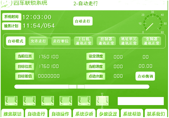根據生產工藝流程,自動確定行走的目標位置。根據距目標位置的遠近,自動控制機車的速度,在自動走行中到達目標位置時自動停止、自動對位。