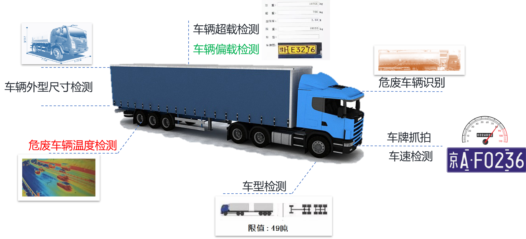 融合電子信息、計(jì)算機(jī)、圖像等技術(shù),對(duì)超載車(chē)輛、違法行為進(jìn)行監(jiān)管及處置